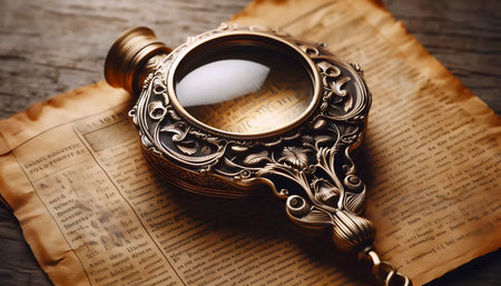 Magnifying glass closeup view on a paper background