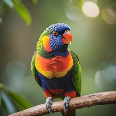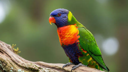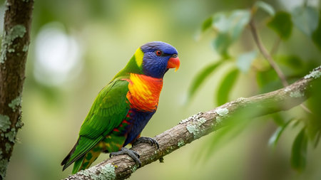 A beautiful Australian rainbow lorikeet parrot on a branch, a wild bird in nature