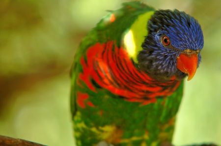 Closeup of A single parrot (Trichoglossus haematodus, lorius chlorocercus)