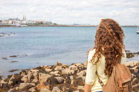 Stavanger, Norway-September 2016. Anonymous person walking around Stavanger. Stavanger is a city in southwestern Norway. The cathedral of Stavanger, located in the center, was erected at the time of the founding of the city in the 12th century. The Stavan