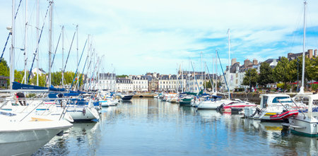 Vannes, France - August 7, 2017: Leisure boats moored in canal of the port