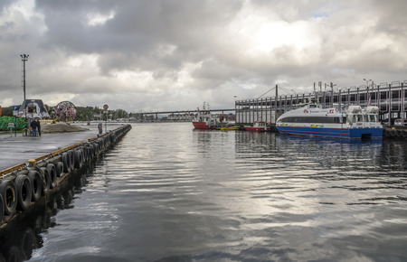 Helsinki, Finland - March, 14, 2016: boats in a harbour of Helsinki, Finland