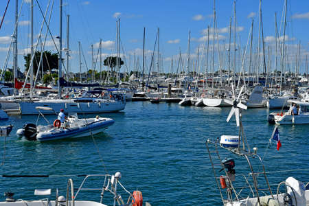 La Baule-Escoublac, France-November 1, 2018 View of Lules Sandeau Quay and boats moored in the port of Le Pouliguen Channel in La Baule, the seaside resort in Southern Britany. Loire-Atlantic region.