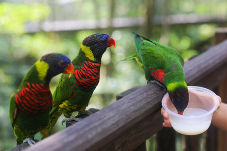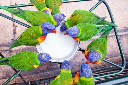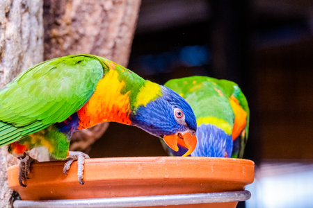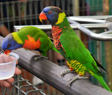 beautiful colored Rainbow Lorikeet Parrot in the zoo drinking nectar