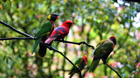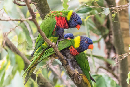 The portait of a cute and colorful parrots of the Loriini species. Rainbow Lorikeet, Trichoglossus haematodus is a species of Australasian parrot. attica zoological park