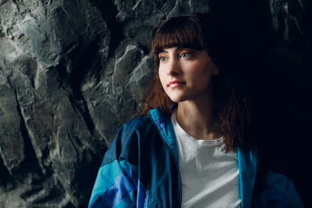 Young sporty woman 80 and 90s style. 90s fashion positive girl