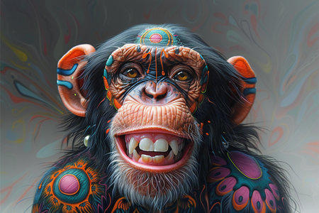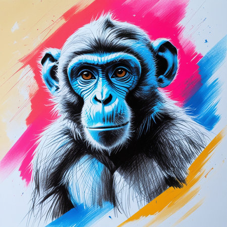 Chimpanzee on colorful grunge background. Hand drawn illustration
