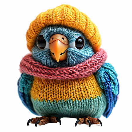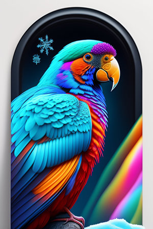 Colorful parrot on the background of snowflakes. 3D illustration.