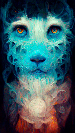 A fantasy magic dog in a fairy-tale wonderland forest. Artistic abstract cute animal. Perfect for phone wallpaper or for posters. 3D Rendering.