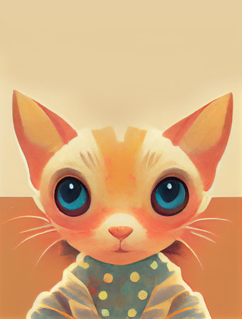 Cute Little Animal Illustration of Cat Kitty for Kids Children Book in Watercolor Painting Art Cartoon Character