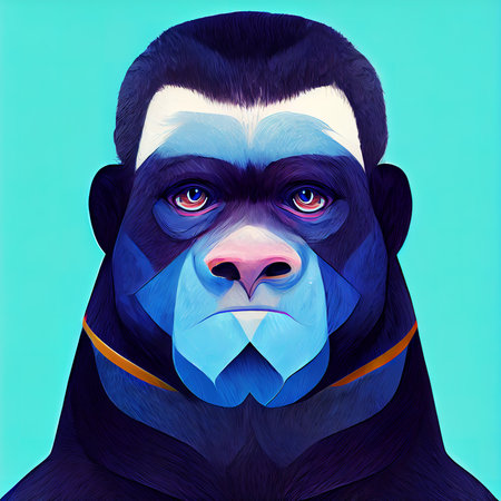 Gorilla muzzle. Blue gorilla close-up portrait. Frontal portrait of a gorilla. Digital illustration.