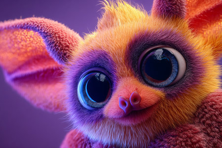 Charming bat with big eyes on a purple background in macro photography for Halloween vibes