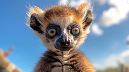 Adorable close-up of a lemur with big yellow eyes in a natural habitat. Concept of wildlife, nature, animals, primates.