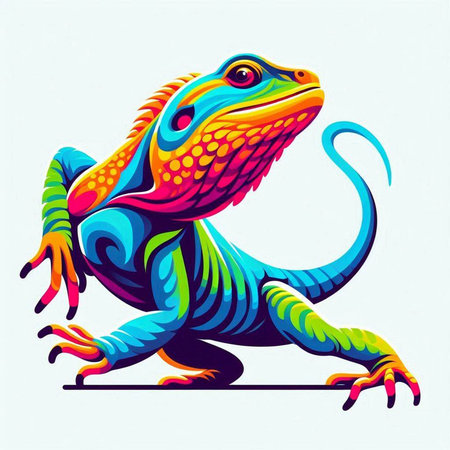 A vividly colored lizard displays a striking array of patterns while resting quietly.