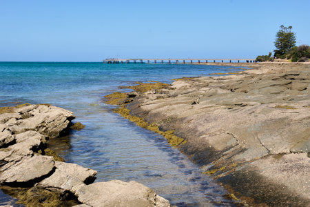 The famous Lorne Pier with blue sky in Lorne, Victoria, Australia