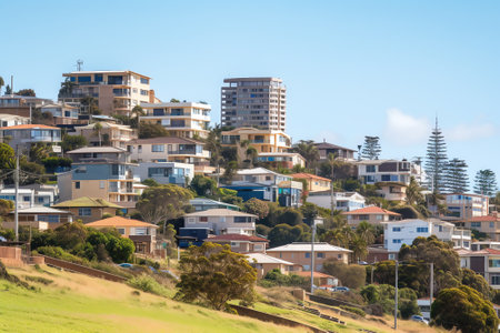Generative AI : Aerial view of industrial area along the coast facing the Ocean Newcastle New South Wales Australia