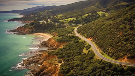 View of the Great Ocean Road from Cape Patton Australia on a sunny day