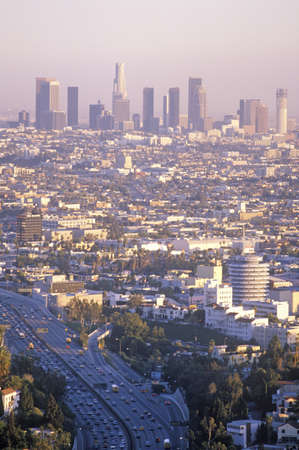 View of Downtown Los Angeles from the Hollywood Hills Interstate 101 is shown in the foreground