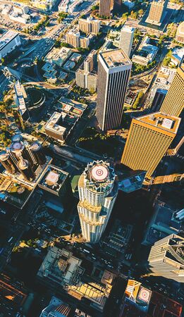 Los Angels city center. Los angeles aerial view, with drone. Los Angeles downtown skyline. LA background. Los Angels city center. Cityscapes skyline scenic aerial view.