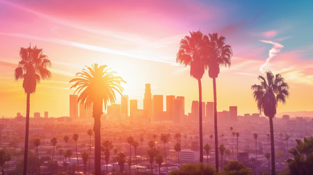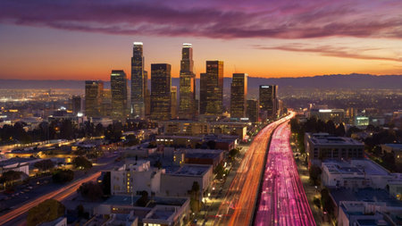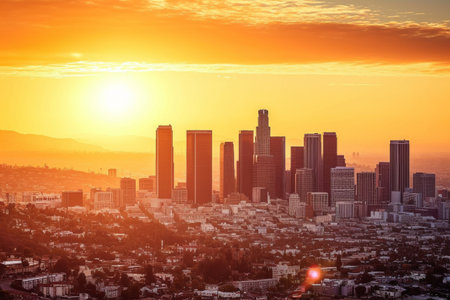Cityscape of Los Angeles at sunset California United States Skyline of Los Angeles at sunrise California USA AI generated