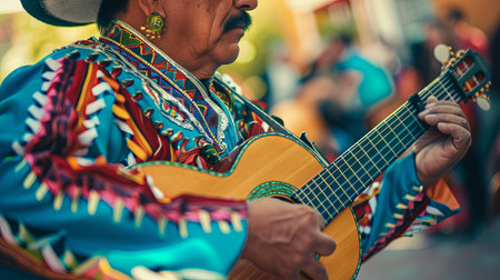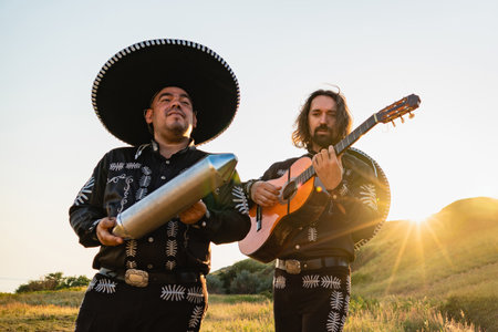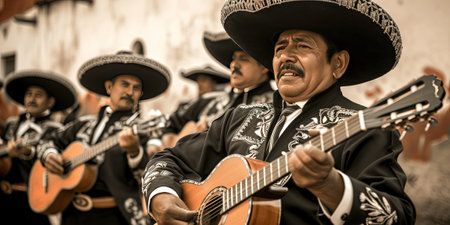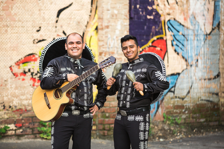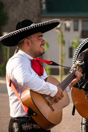 Mexican musicians in traditional costumes mariachi on the streets of the city