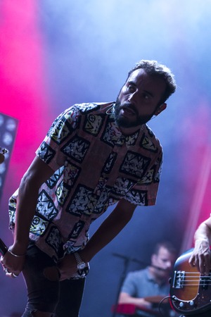 FARO, PORTUGAL: 6th SEPTEMBER, 2019 - Rock band Vitor Hugo, performs on Festival F, a big festival on the city of Faro, Portugal.