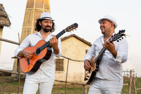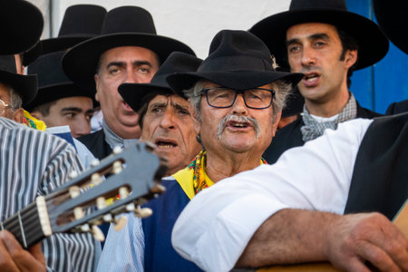 MERTOLA, PORTUGAL - 22nd MAY 2022: Alentejo Portuguese traditional a capella group of men singing on a festival located in Mertola, Portugal.