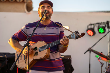 FARO, PORTUGAL: 6th SEPTEMBER, 2024 - Music artist, Romeu Bairos, performs on Festival F, a big festival on the city of Faro, Portugal.