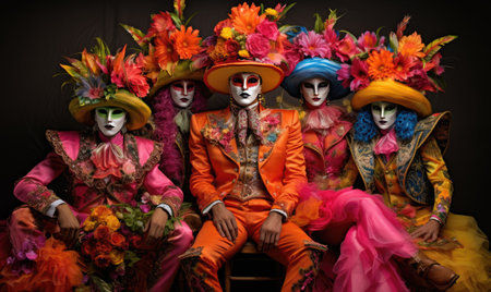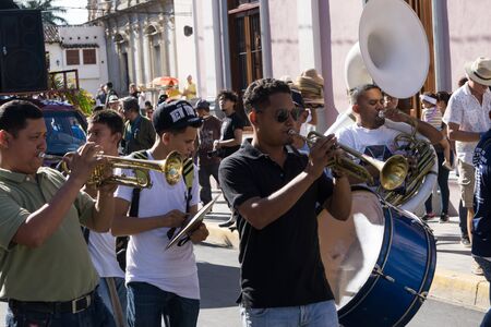 Granada, Nicaragua – February 15, 2017: People wearing traditional dress and colorful masks during celebration of Carnival. Nicaragua traditional folk