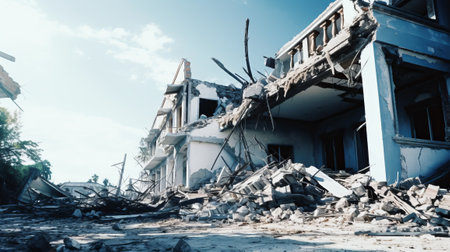 Bump of war: devastation after bombing, horrors and enduring consequences of war, Effect of hostilities, conflict, destruction of human life, echoes of warfare. Destruction bombardment
