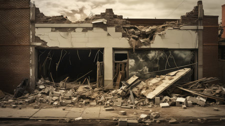 Broken Brick Wall Demolition Debris Construction Rubble Destruction Disaster Scene