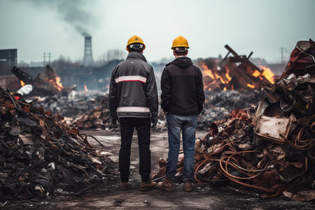 Lost in the Junkyard: Unrecognizable Workmen Amid a Heap of Metal Scrap - AR 3:2