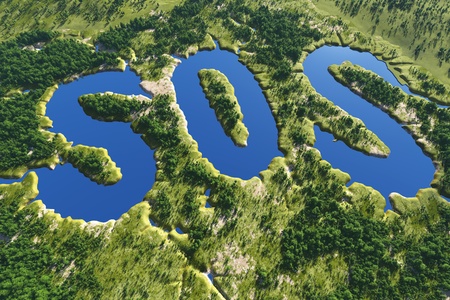 The text sos on the background of the green landscape