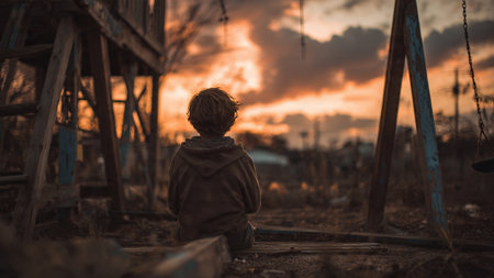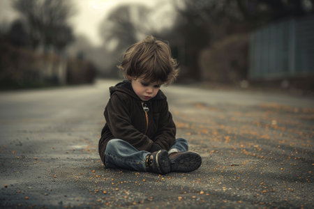 Desolate child sitting alone, experiencing sadness and hopelessness