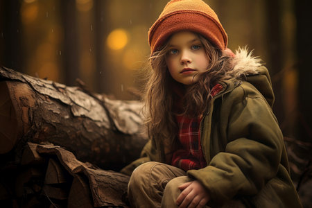 Resilient Lumberjack child girl forest. People face. Generate Ai