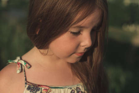 Side shot of the little girl with melancholy eyes