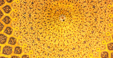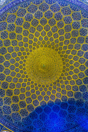 Isfahan Sheikh Lotfollah Mosque Yellow Blue Tiles Ornament Ceiling