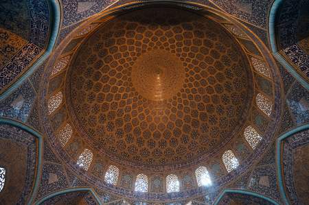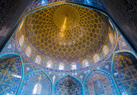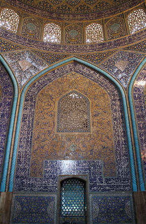 Beautiful interior of Sheikh Lotfollah Mosque at Naqhsh-e Jahan Square in Isfahan, Iran. Construction of the mosque was finished in 1618.