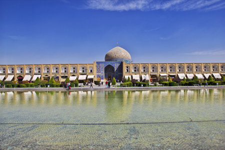 ISFAHAN, IRAN - AUGUST 7, 2016: Sheikh Lotfollah Mosque seen from the Naqsh-e Jahan Square, one of the symbols of the city