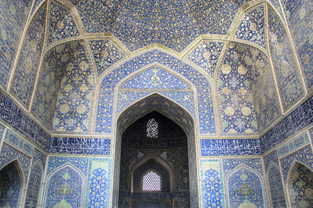 Isfahan, Iran - May 11, 2017:Mosque in Isfahan blue. Traditional ornaments and decorations. Iran