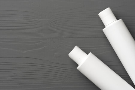 Shampoo, Cosmetic, disinfect soap, hygiene pattern. Empty place for logo. Hard light, flat lay. Personal care products, spa cosmetic, beauty treatment. Hygiene plastic bottle, body care kit