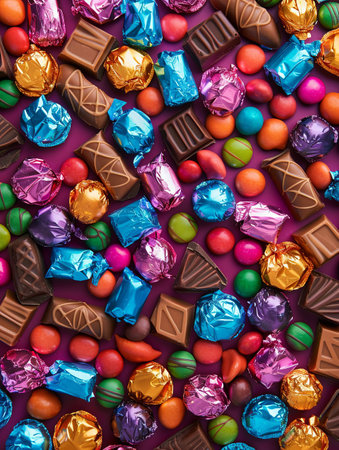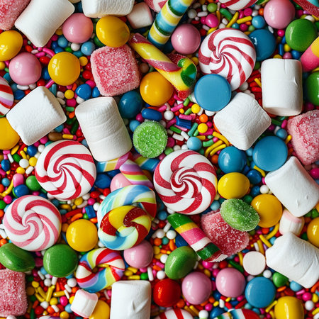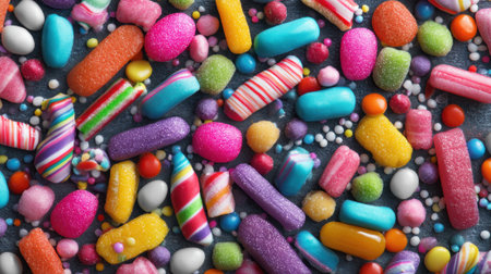 high resolution image depicting an array of colorful candies and sweets set against a visually appealing background
