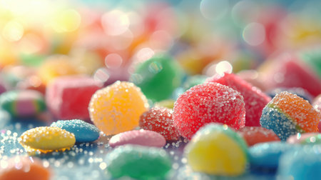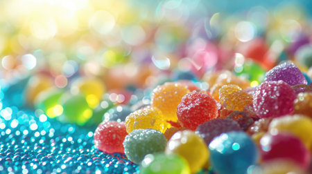 Colorful Jelly Gums Candy Sweets, Vibrant Gummy Texture Background