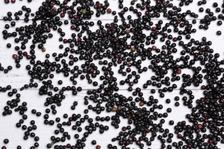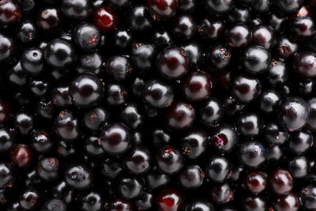 Black elderberries (Sambucus) as background, top view
