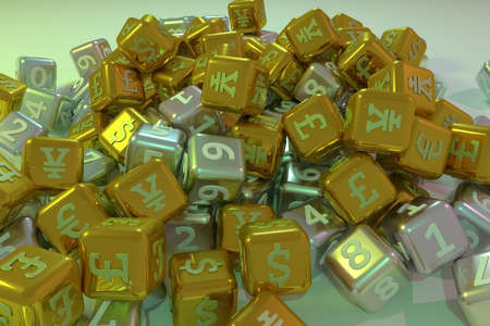 Cube or block number and currency sign or symbol, illustrations business finance, for graphic design, wallpapers, booklets. 3D render.