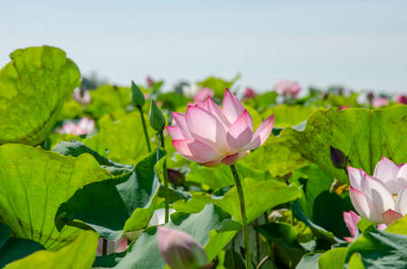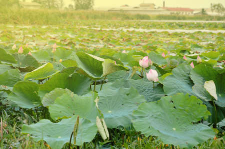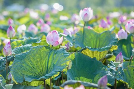 Lotus flowers blooming in the pond in the early morning