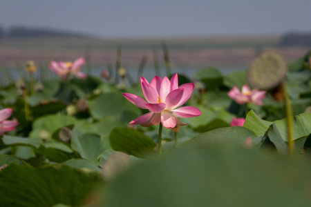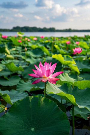 stunning lotuses in a lake in Japan