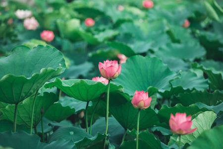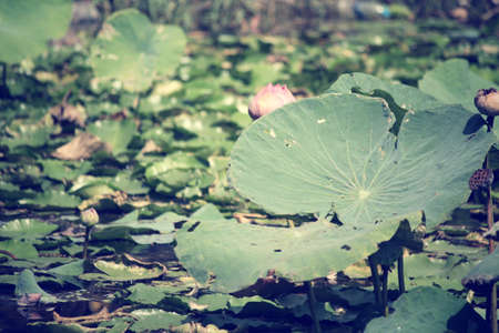 Lotus flowers blooming in the pond. Selective focus.
