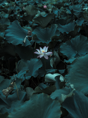 Softly blurred and bathed in a hazy sunlight the lotus pond reflects a dreamlike oasis beckoning you to escape the chaos of reality.