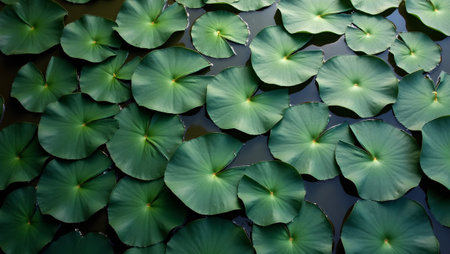 Tranquil pond with overlapping water lily leaves